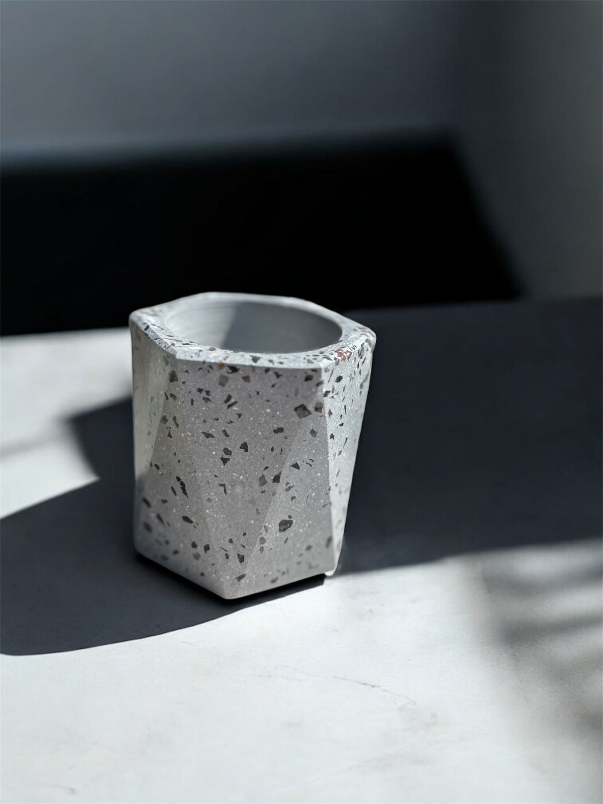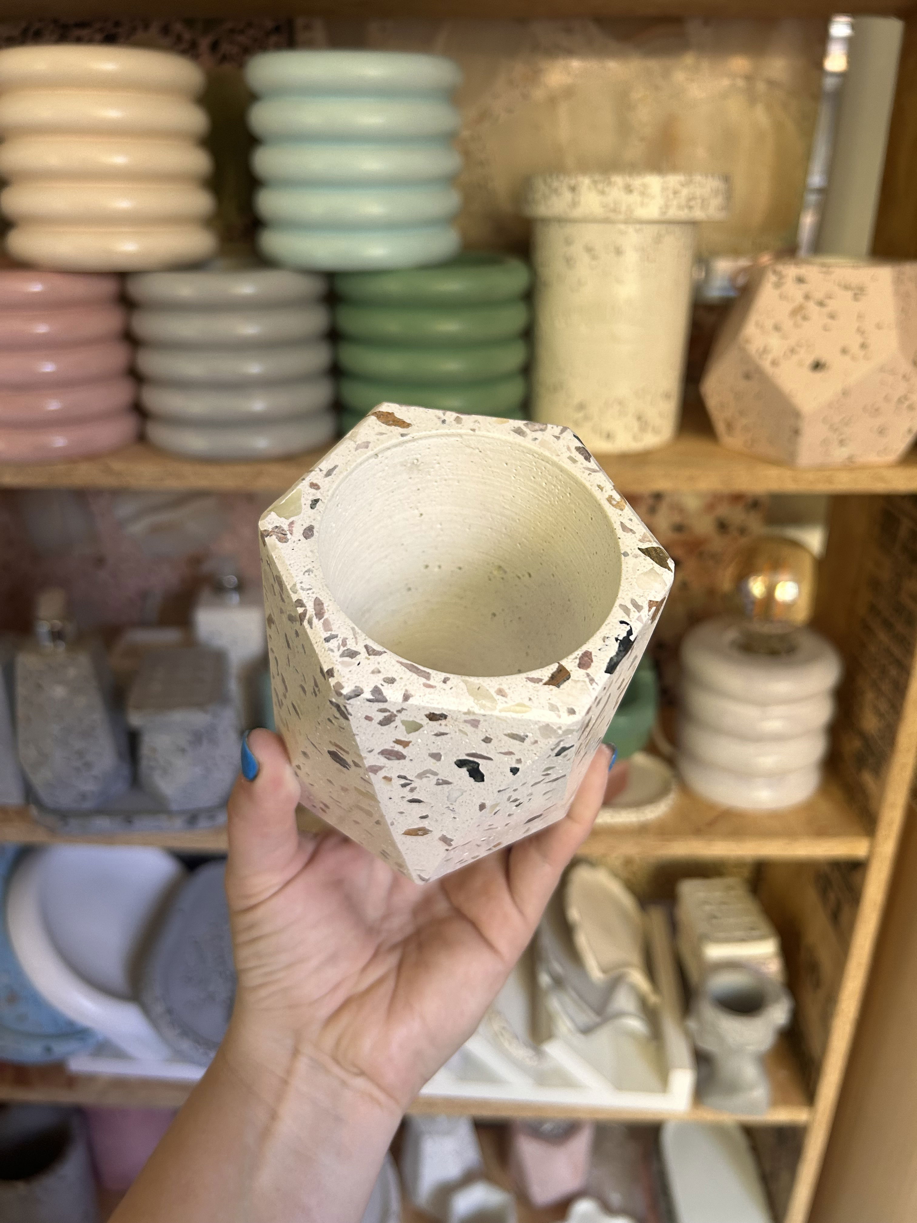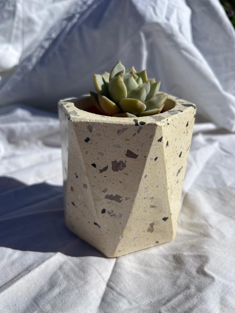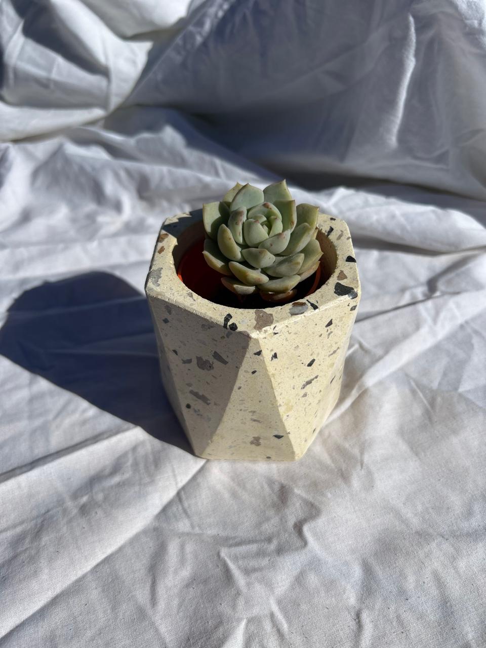 Maceta faceta con blend de piedras naturales- Altura 9.5 CM - Se entrega impermeabilizada y laqueada.