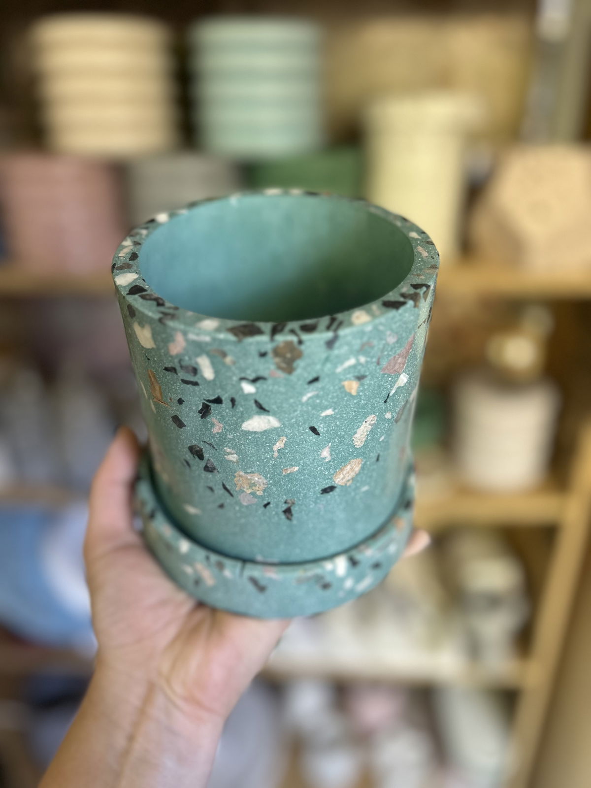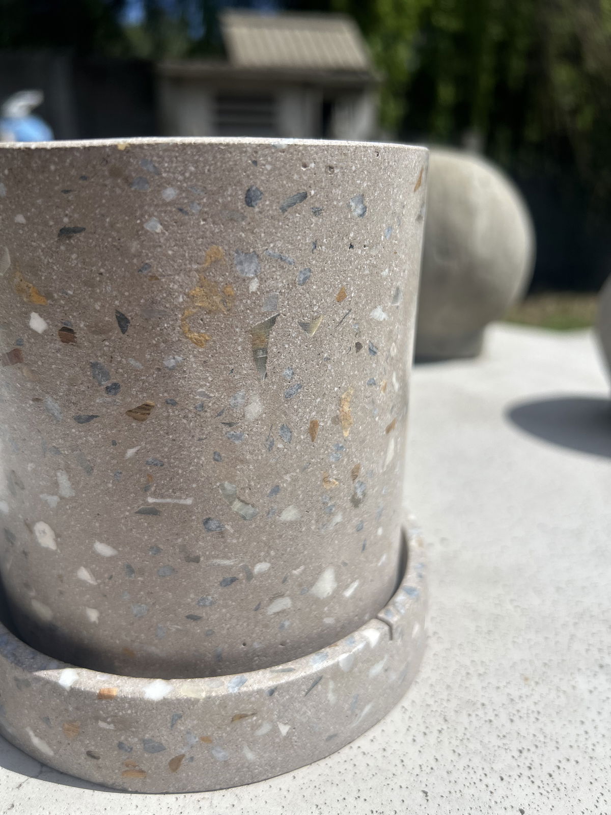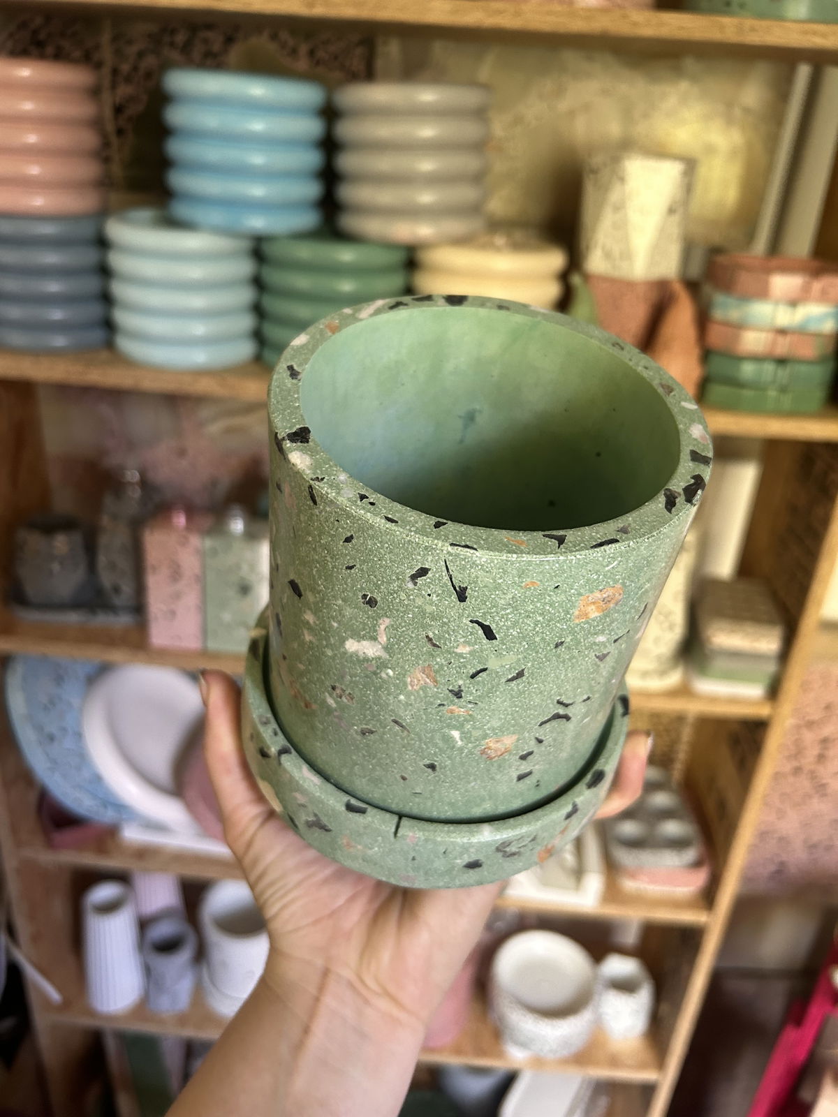 Maceta cilindro número 10 + plato de apoyo para drenaje de agua