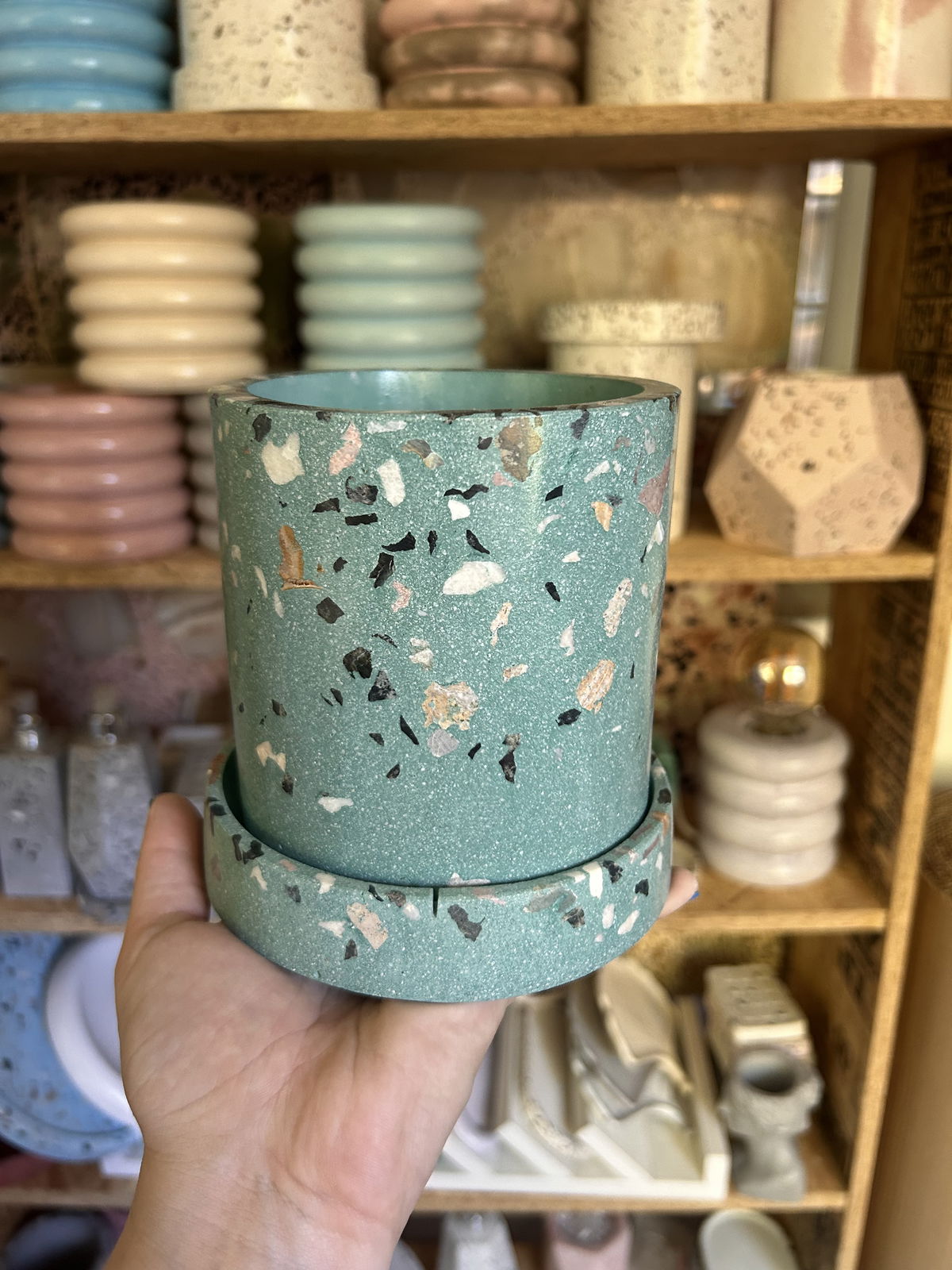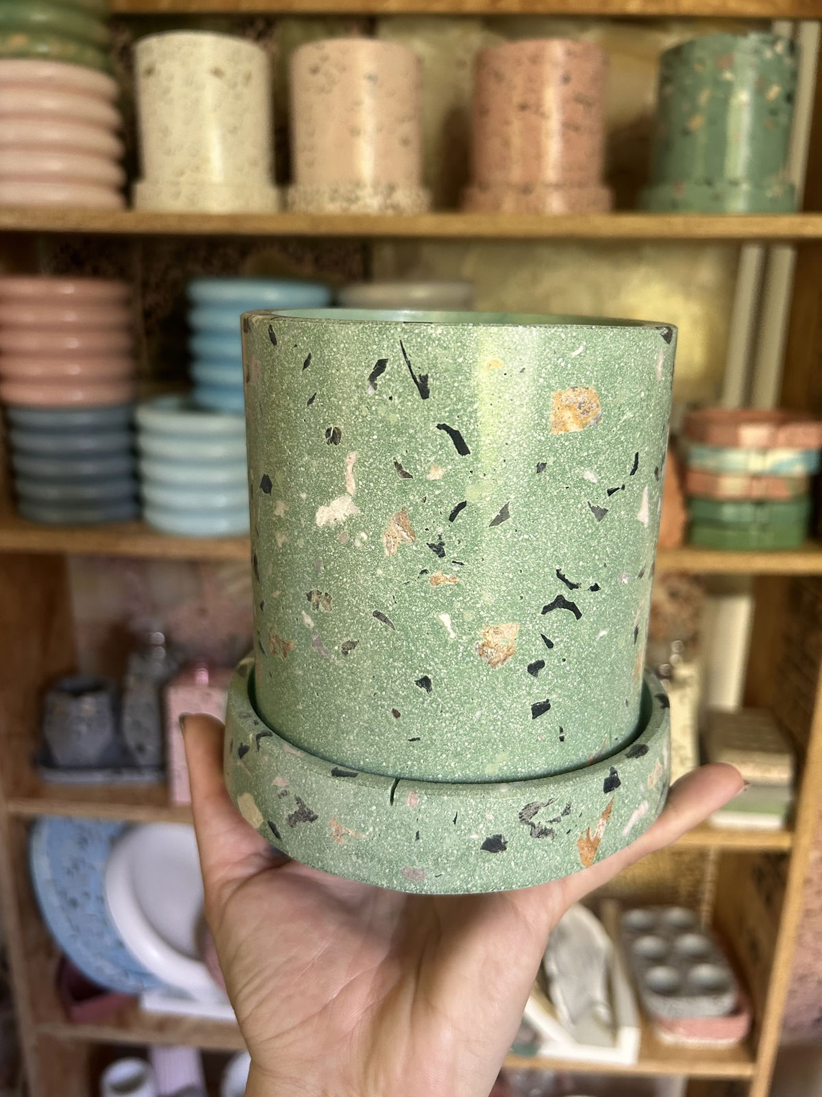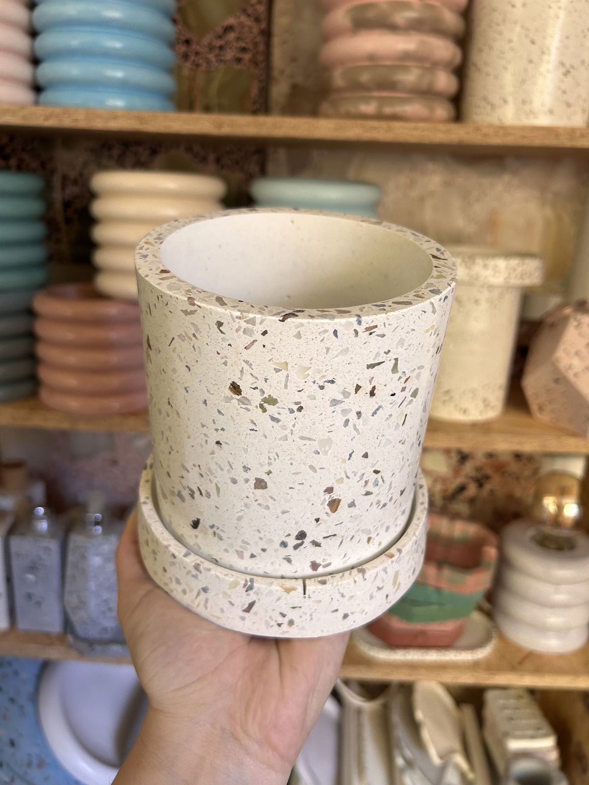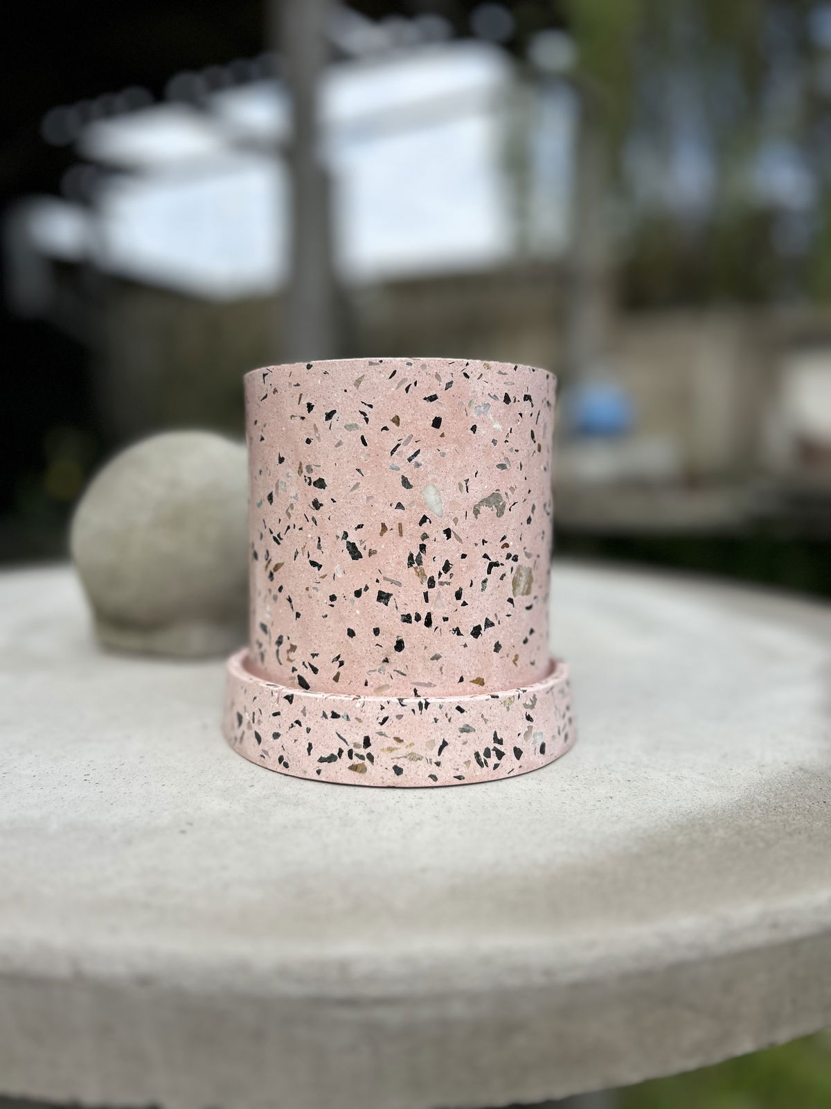 Maceta cilindro número 10 + plato de apoyo para drenaje de agua