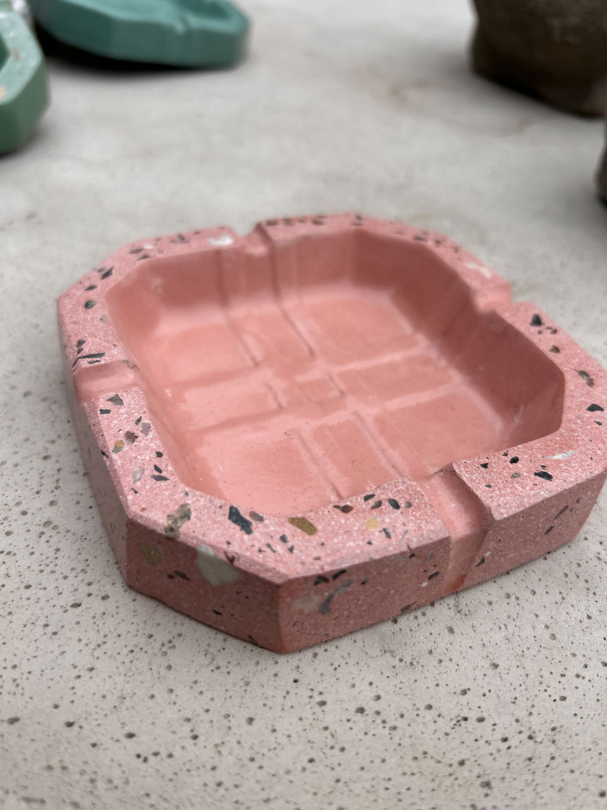 Hecho artesanalmente en cemento y disponible en una variedad de colores, es perfecto tanto para usar como para decorar. Su textura, peso y forma le dan carácter, mientras que los tonos elegidos aportan personalidad sin perder elegancia.