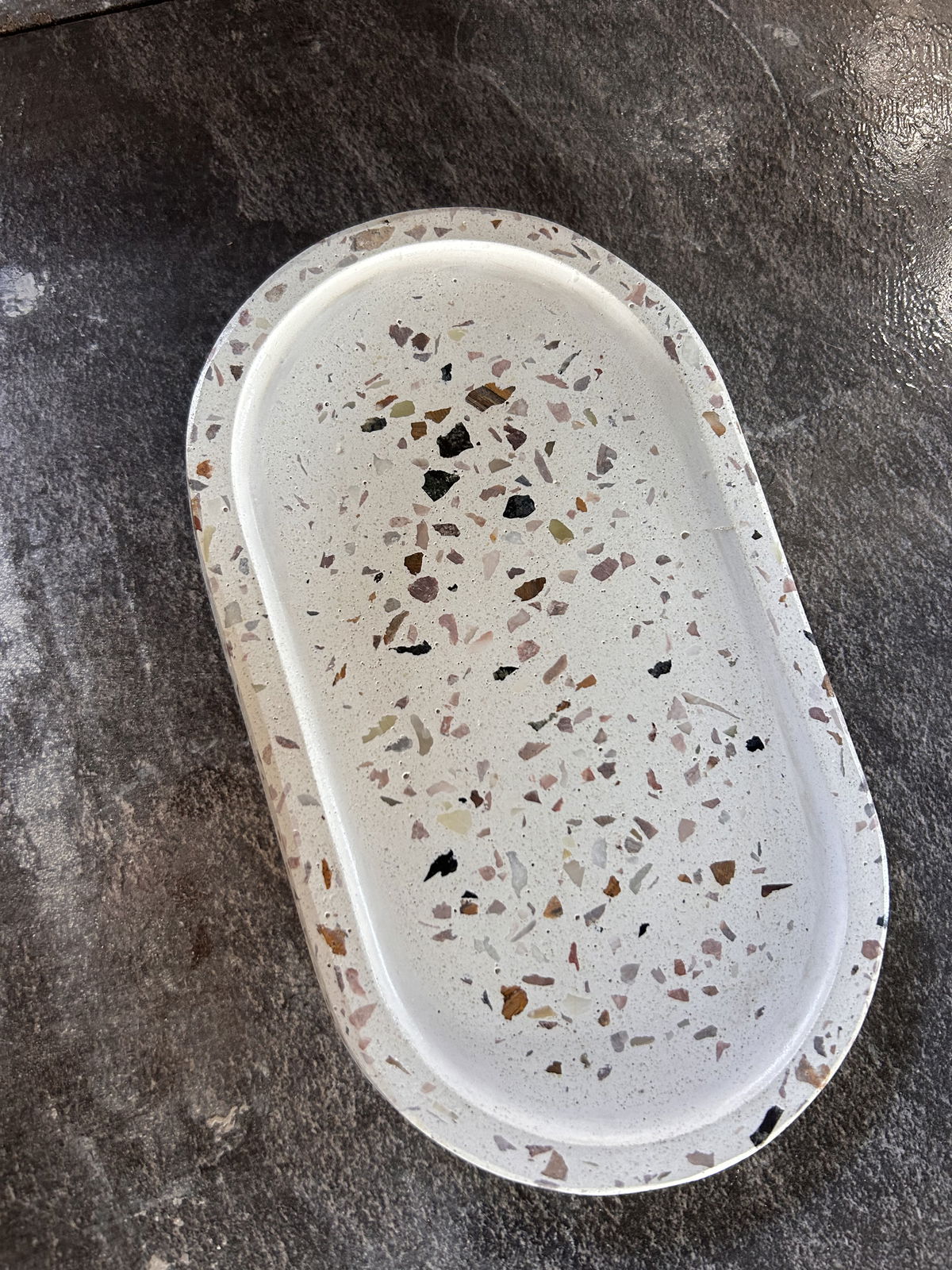 Si sos fan del detalle y te gusta que tu casa tenga onda, esta bandeja oval de terrazzo te va a encantar 🤍