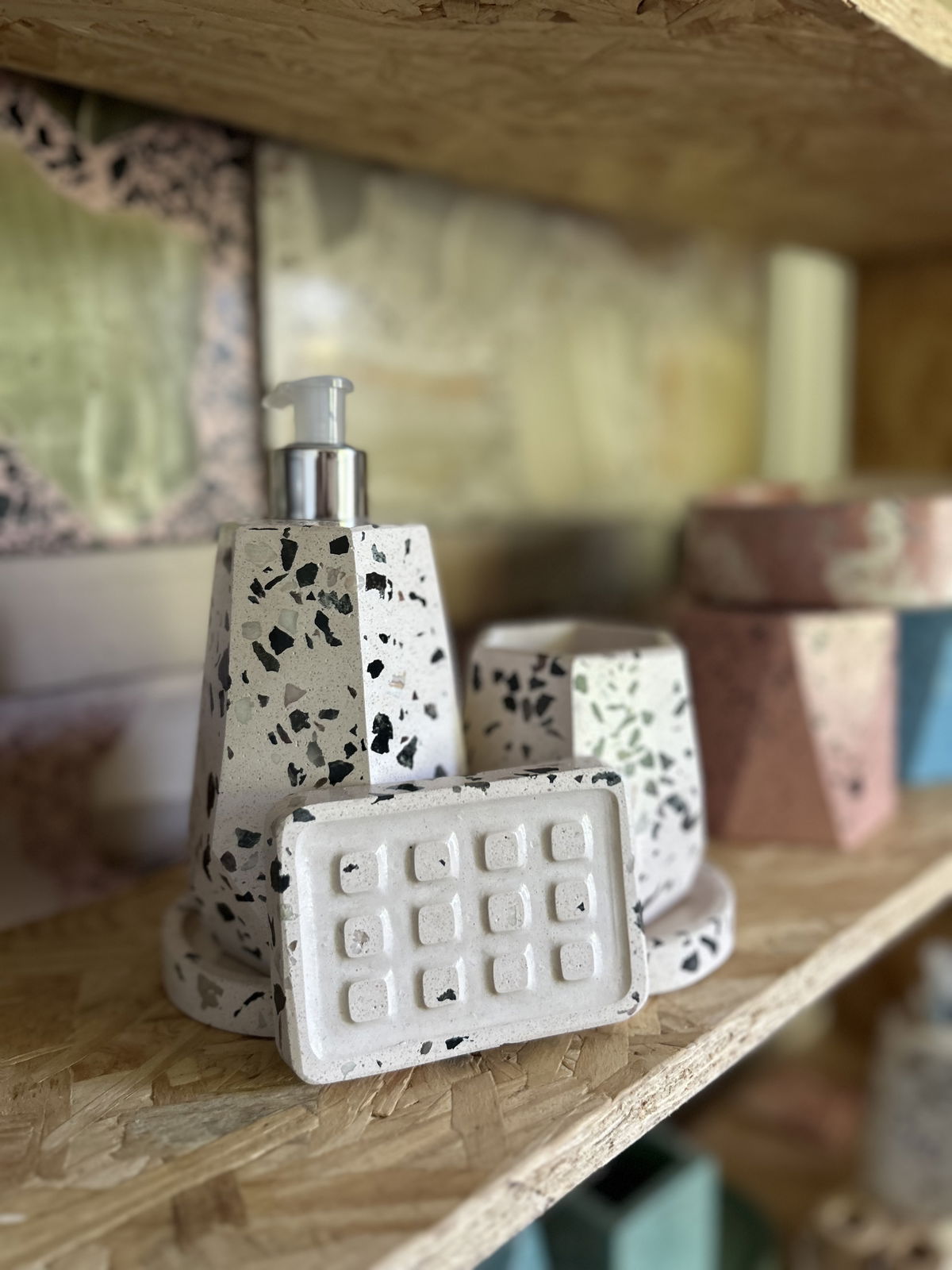 👉🏼Jabonera chica para jabón de tocador en terrazzo.